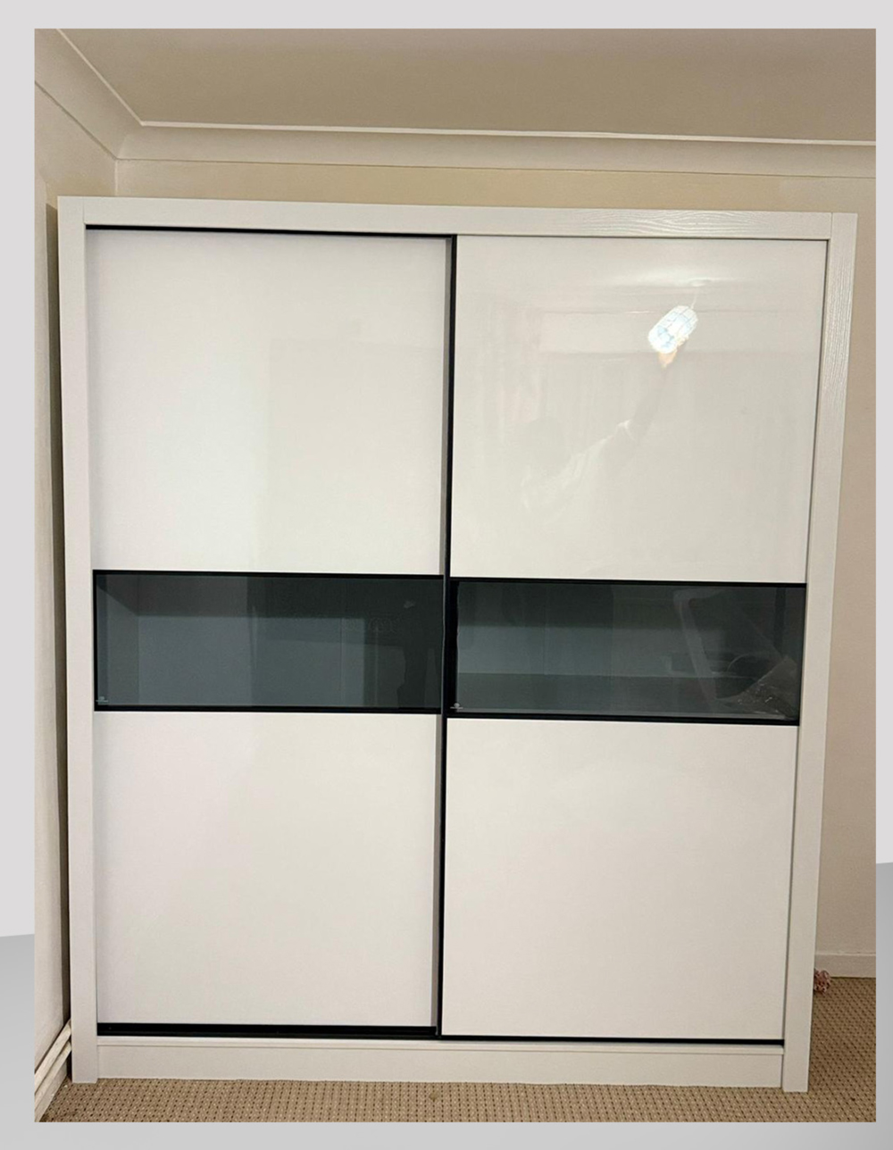 High gloss sliding door wardrobe.
